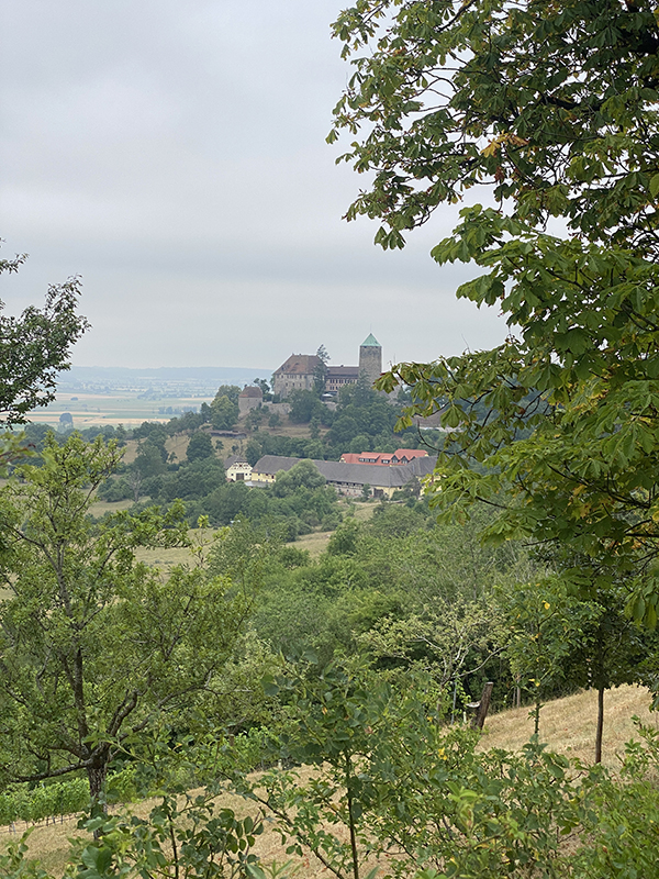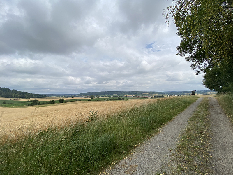 Nach einem sehr guten Frühstück im Gasthof Goldener Stern starten wir um 7:45 Uhr. Heute liegen nur etwa 14 Kilometer vor uns – was gut ist, denn es wird extrem heiß.