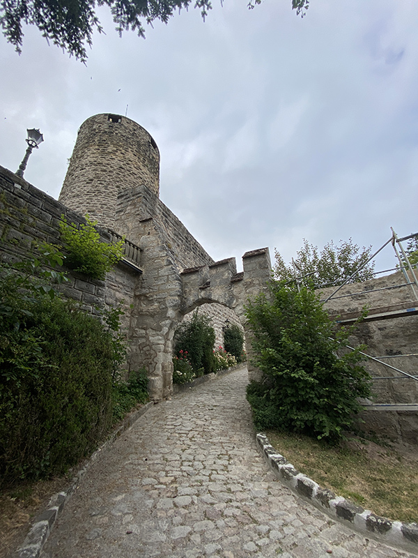 Nach knapp 25 km erreichten wir die Burg Colmberg, wo mich Rainer im Burghof mit einem kühlen Bier erwartete. Unsere Unterkunft lag unten im Ort – im Nachhinein wären wir lieber direkt in der Burg geblieben.