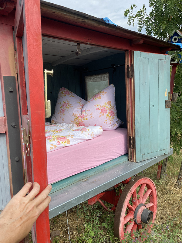 In diesem Schäferwagen finden Pilger einen Schlafplatz