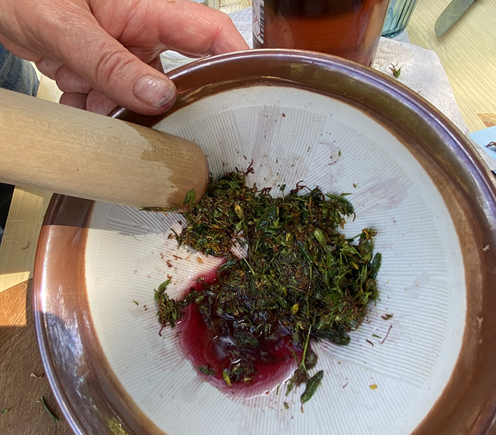 Wir haben Johanniskraut gesammelt, eine Tinktur hergestellt, aus Rotöl und Ringelblumen eine Heilsalbe gerührt und ein Lavendelsäckchen befüllt. Natürlich gab es auch einiges an Theorie zu den einzelnen Kräutern und Ihren Anwendungen zu erzählen. Ich hoffe auf weitere, schöne Seminare im Garten.